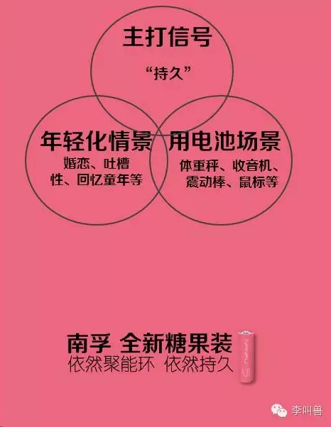 李叫兽说过:文案是为了解决问题而存在的,而不是为了发挥个人的创意能力。本期案例分析,就用李叫兽实际做过的一个项目“南孚糖果装电池”为例,讲讲如何利用文案解决实际问题。 前段时间,南孚经过馒头商学院的引荐,找李叫兽设计一个新产品(糖果装电池)的上市宣告文案。